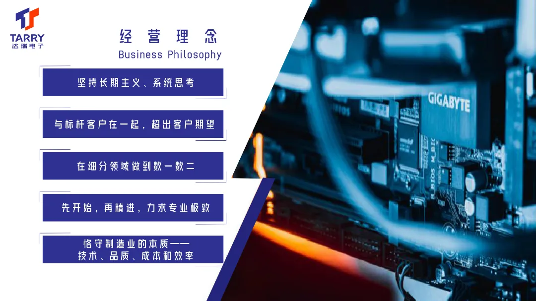 除了文化理念和Logo标识,公司还发布了其经营理念。公司强调坚持长期主义、系统思考,与标杆客户在一起,超出客户期望。同时,公司还注重在细分领域做到数一数二,追求专业极致。此外,恪守制造业的本质——技术、品质、成本和效率也是中国一站式服务官网电子的重要经营理念之一。