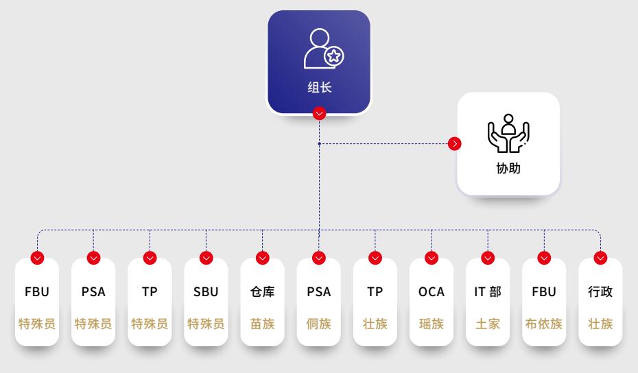 我们建立多元活动小组,该小组负责规划、执行和监督各种不同类型的活动,以促进公司内部和外部的多元化。小组成员来自不同部门和不同民族 ( 例如 : 苗族、侗族、壮族、瑶族、土家、布依族 ) 的员工,以确保多元和包容的代表性。这个小组的主要目标是创造一个包容性的工作环境,鼓励员工的多元观点和背景,并推动公司的多元文化价值。在这个小组的领导下,我们计划举办各种活动,以提高员工对多元议题的意识和理解,我们相信这将有助于提高员工的工作满意度及归属感和集团的整体表现。